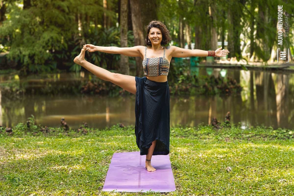 A luz filtrada pelas árvores desenhou contornos suaves, enquanto o silêncio do parque criou o cenário ideal para expressar força com delicadeza. O Hatha Yoga aparece na estabilidade das bases, na firmeza das transições. O Vinyasa Flow surge na fluidez, na continuidade do movimento que conecta uma postura à outra.