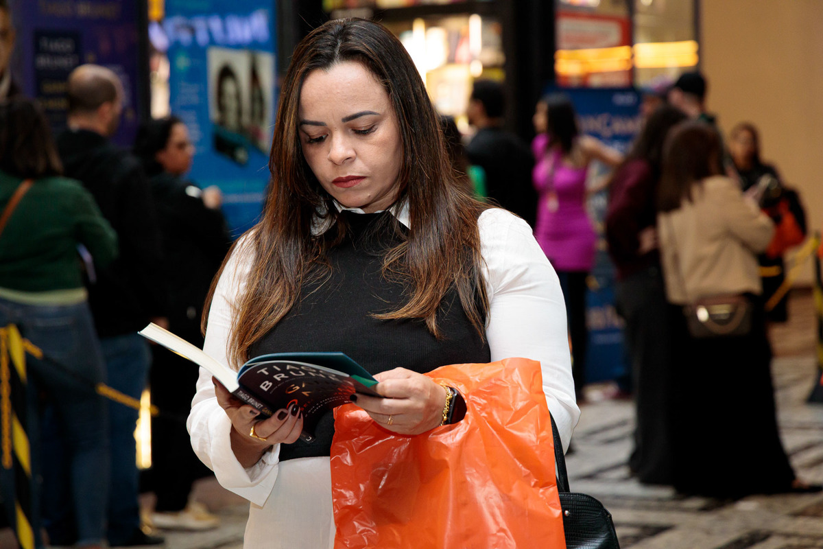 Ao longo do encontro, acompanhei e registrei os momentos mais marcantes da noite — desde a movimentação do público e os encontros entre leitores até os retratos durante a sessão de autógrafos. Em eventos editoriais desse porte, a fotografia tem um papel importante na documentação do lançamento e na construção da memória visual do encontro.