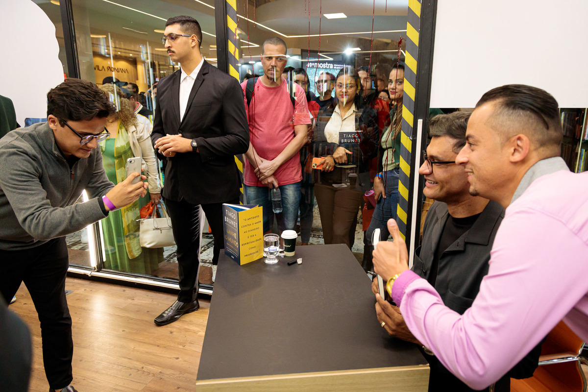 A procura foi tão grande que foi necessário realizar distribuição de senhas para organizar a fila de autógrafos, já que a livraria estava completamente cheia. Amigos, parceiros e fãs do autor compareceram para prestigiar o lançamento e ter a oportunidade de conversar com Tiago Brunet durante a sessão de autógrafos.